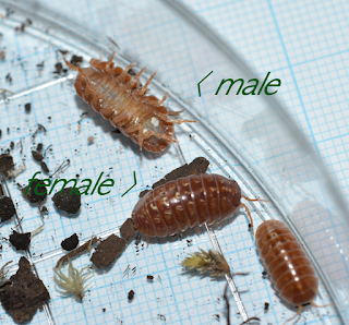 case 中にいた成体メスたちなのだが、オスが死んだようで・・・babies とメスしか見つからなかった。(本当は、オスをred にかけた方が信用できるのだが・・仕方ない) 腹を見るとpregnant ではなかったので、オスがいない寡が続いたと推定した。それで、red オスと交配することにした。