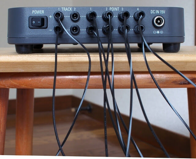 そのコントローラーをendoTrack(plasticな新しいほう)で試した。これは、優れもので充分な電圧電 流のACtoDC変換器がついている。HO制御も設定で選べる。 まず、turnOut を使えるようにした。endonewTurnOut電源部は、pink > のように先が2又になり、純正ACtoDCアダプタにさしこむ方式になっている。それで、手持ちのコネクタ付コード2pをみつけて、さしこむことに。 が・・・blue>のようにpin間隔が違うので別々にさしこみ完成と。;