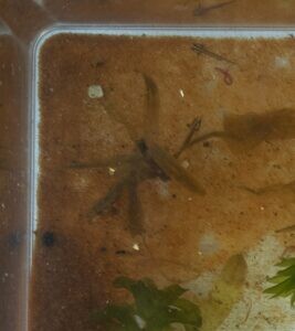 アルプスクシイモリ(=Italian クシイモリ)の幼生誕生。 未分類 X Facebook はてブ LINE コピー 2025.04.29 Normal オス * leucistic メスを交配していた;; — と幼生誕生。heterozygote なので丈夫と信じている。;; —- 全長10mm強ある個体たち。 6尾は確認できる。 部分青水中にいるかどうかわからない、infuzoria 給餌。 急いでbrineShrimp の手配だ。 —————–