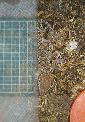 ソメワケササクレヤモリ|冬version, その後。 未分類 X Facebook はてブ LINE コピー 2025.05.09 冬用に換え、6日目のBigHeaded gecko, たち。点検だ。オスは元気なはずなので、メスたちを調べる。その1,striped, –その2,bandedNormal, —いずれも湿度不足で「脱皮不十分」なり。しかし、尾っぽを見ると「bandedも危険を脱して、striped もまあまあ」とも言える。これで真冬を凌ぎ、暖かくなってからの「体調& 餌喰い・向上」に期待。——-